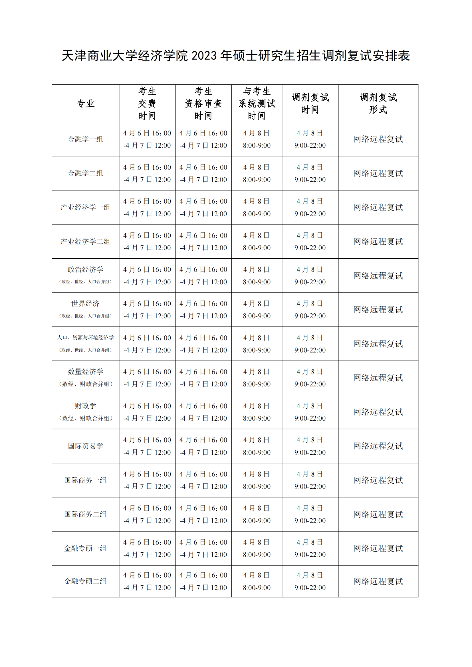 根据天津市有关文件规定,收取复试费90元/生。复试费用考生通过远程面试系统于2023年4月7日12点前缴纳完毕。