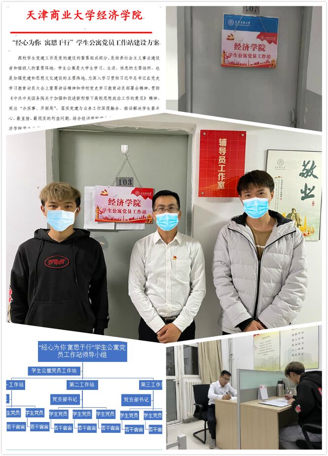 “经心为你 寓思于行”学生公寓党员工作站成立。学院党委书记张捷,党委副书记、院长梁学平为党员工作站揭牌。同时,学院党委在党员工作站设立同名功能型党支部。
