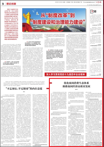 副院长梁学平理论文章“优化夜间消费生态体系,助推夜间经济高质量发展”。文章指出,消费是促进经济稳定运行的“压舱石”,是实现经济高质量发展的关键性因素。在一系列消费需求当中,夜间经济所释放的消费需求不容小觑。完善夜间消费生态体系,营造良好的夜间消费生态环境,有助于打造我市经济高质量发展的新增长点。文章从高质量发展夜间经济是拉动消费增长的新动力和推动经济可持续增长的重要抓手,优化夜间消费生态体系是推动夜间经济高质量发展的重要路径两个方面,从必要性和操作性角度进行了详细阐释。