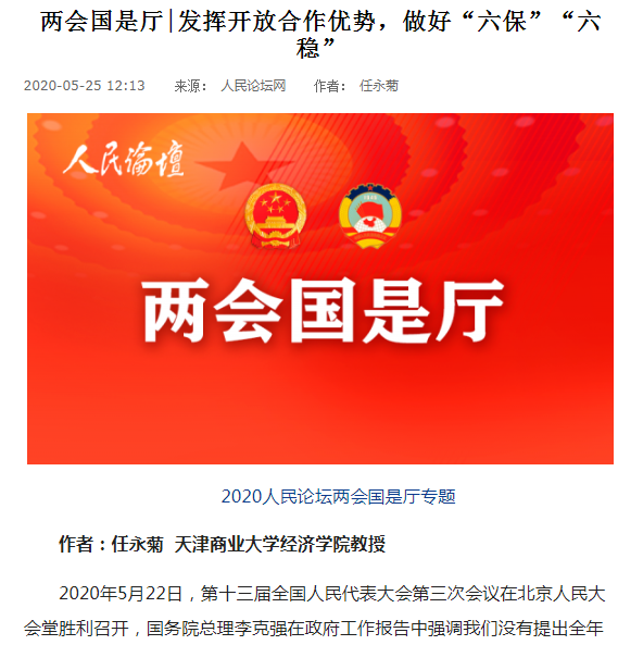 5月25日,人民论坛网“两会国是厅”专题版块刊发探花社区