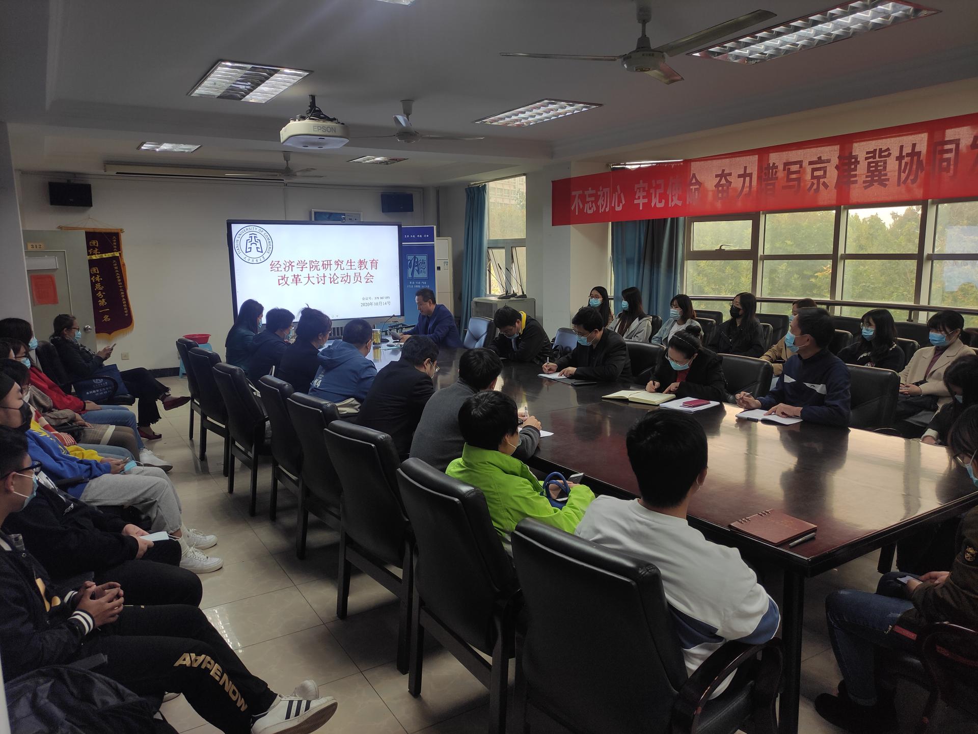 召开研究生教育改革发展大讨论动员会,院长梁学平、教学副院长姜达洋、各硕士点负责人、科研秘书、研究生代表现场参会,硕士生导师及其他研究生线上参会。科研副院长吕明元主持会议。