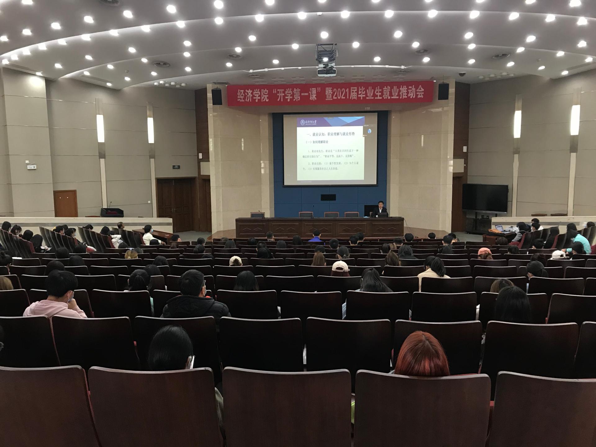 在图书馆三楼国际报告厅召开“开学第一课”暨2021届毕业生就业推动会。院长梁学平、教学秘书、全体毕业班辅导员、2021届全体毕业生参加会议。会议以线上线下相结合方式开展。