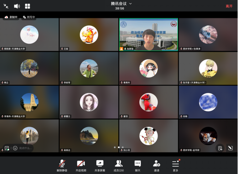 经济系政治经济学教研室联合重庆财经学院、宁夏大学、天津财经大学、天津师范大学、北方民族大学、西华大学、兰州财经大学、西京学院等九大高校的政治经济学教师代表齐聚云端,开展政治经济学课程教学联盟第二次集体备课会,共同续写跨校教研、协同育人的新篇章。此次会议由政经教研室主任王俊副教授主持,副院长李海伟教授和经济系教师党支部书记、系主任李颖副教授应邀参加了此次会议。