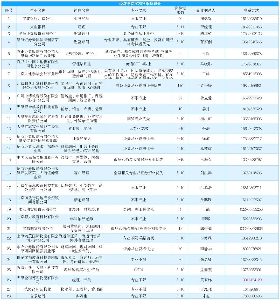 专业需求包括:经济类、财会类、人力资源类、市场营销类、国际贸易类等,还有众多不限专业的岗位